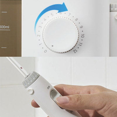 4. Putt the jet tip in your mouth and turn the handle switch to ON before using it