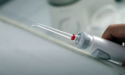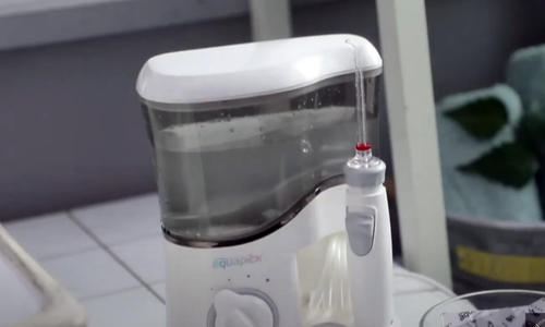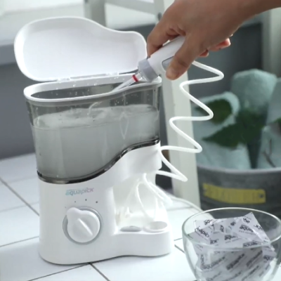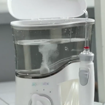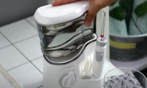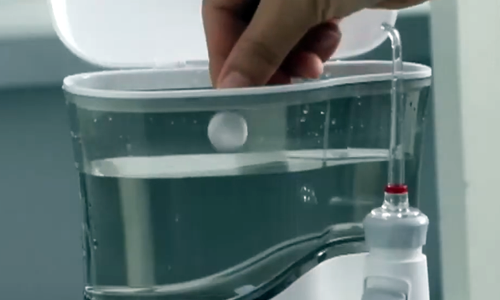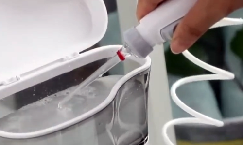 2. Operate the oral irrigator and put jet tip in water tank cleaning for 1 munute
