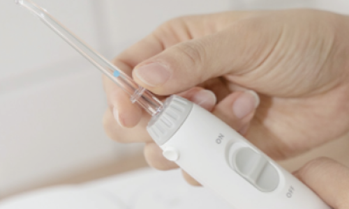 4. Putt the jet tip in your mouth and turn the handle switch to ON before using it